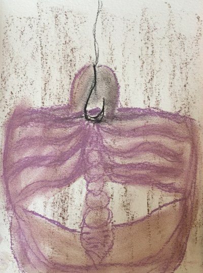 But maybe, just maybe, she had dived deep into this underworld (or inner world) and was unable to return. How does one end up at the bottom of the great body of water and not surface for so long? Her only company had been the sea life who had come to be with her and witness her. Maybe she would receive a visit from a Shaman to brush out her hair and acknowledge her. She had been lonely and thirsty accepting her fate at the bottom of the sea until the hook pulled her to the top.